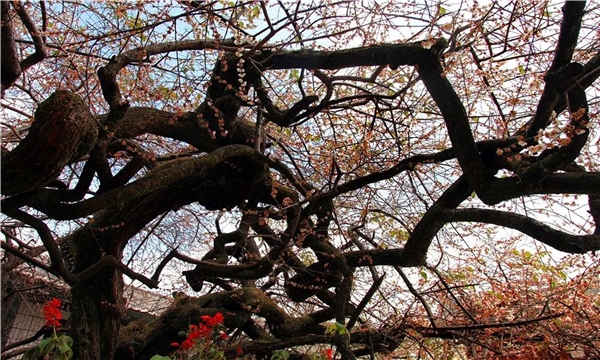 盛夏時節,樹影婆娑,梅果滿枝;寒冬臘月,滿樹繁花似雪,暗香浮動。古梅閱歷風霜,依然充滿生機,傲立古道旁,依依守望古道過往……
