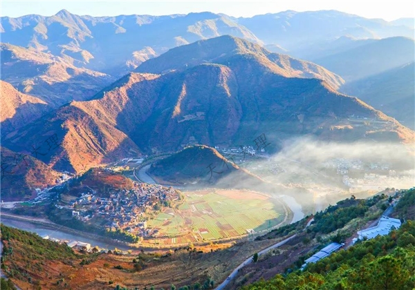 在云龍縣城北面,沘江蜿蜒而來(lái),繞出了一個(gè)“S”型的水灣,構(gòu)成了一幅類似“太極圖”的天然地貌圖景,被譽(yù)為“世界奇觀,云龍?zhí)珮O”。